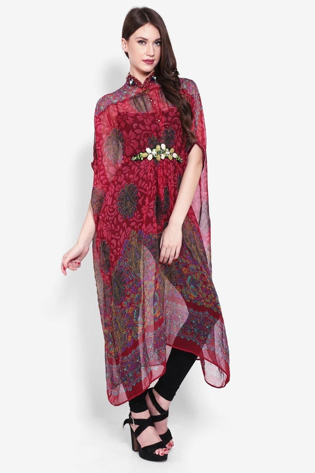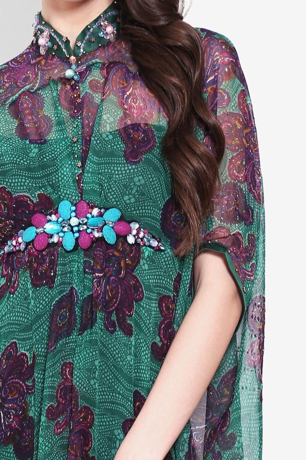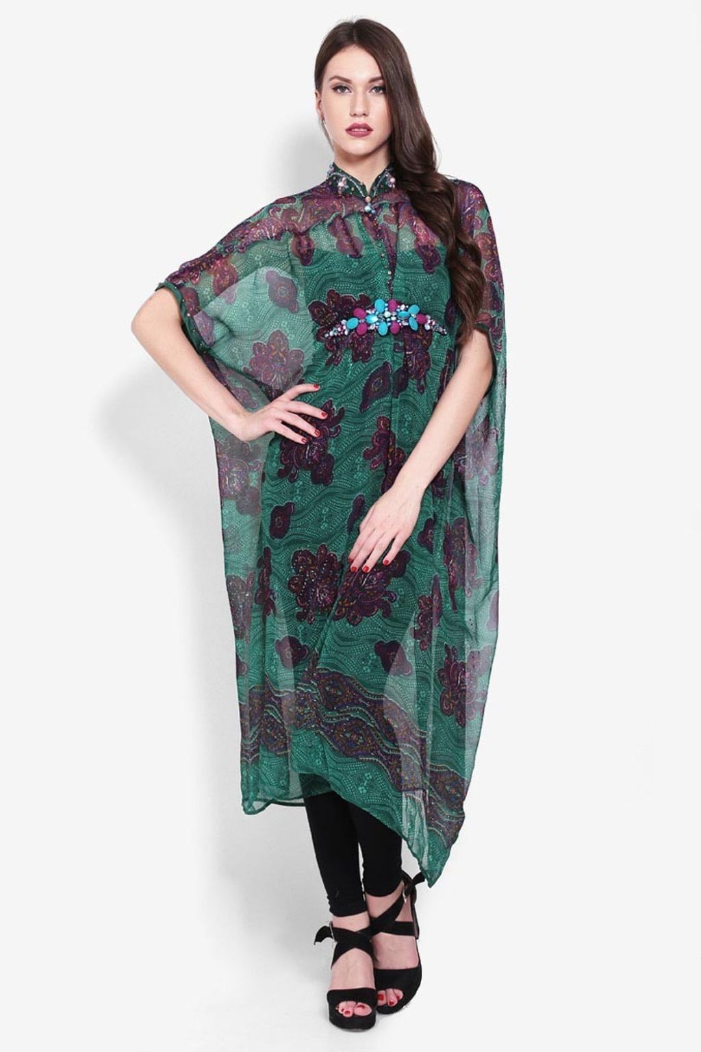 • Kaftan chiffon hijau/marun