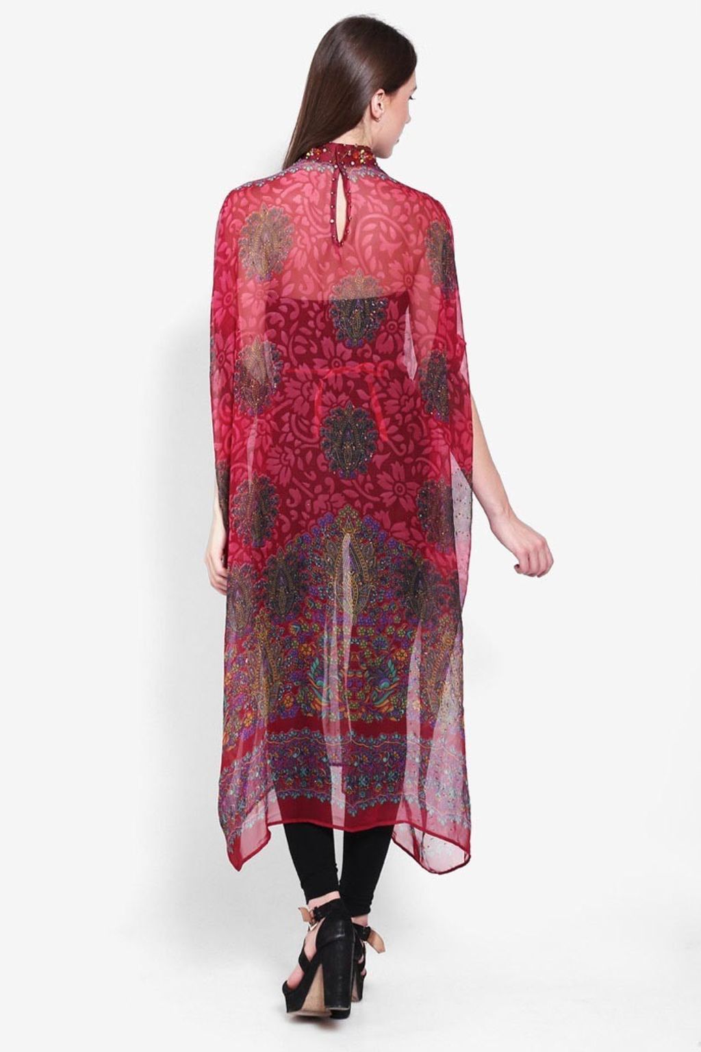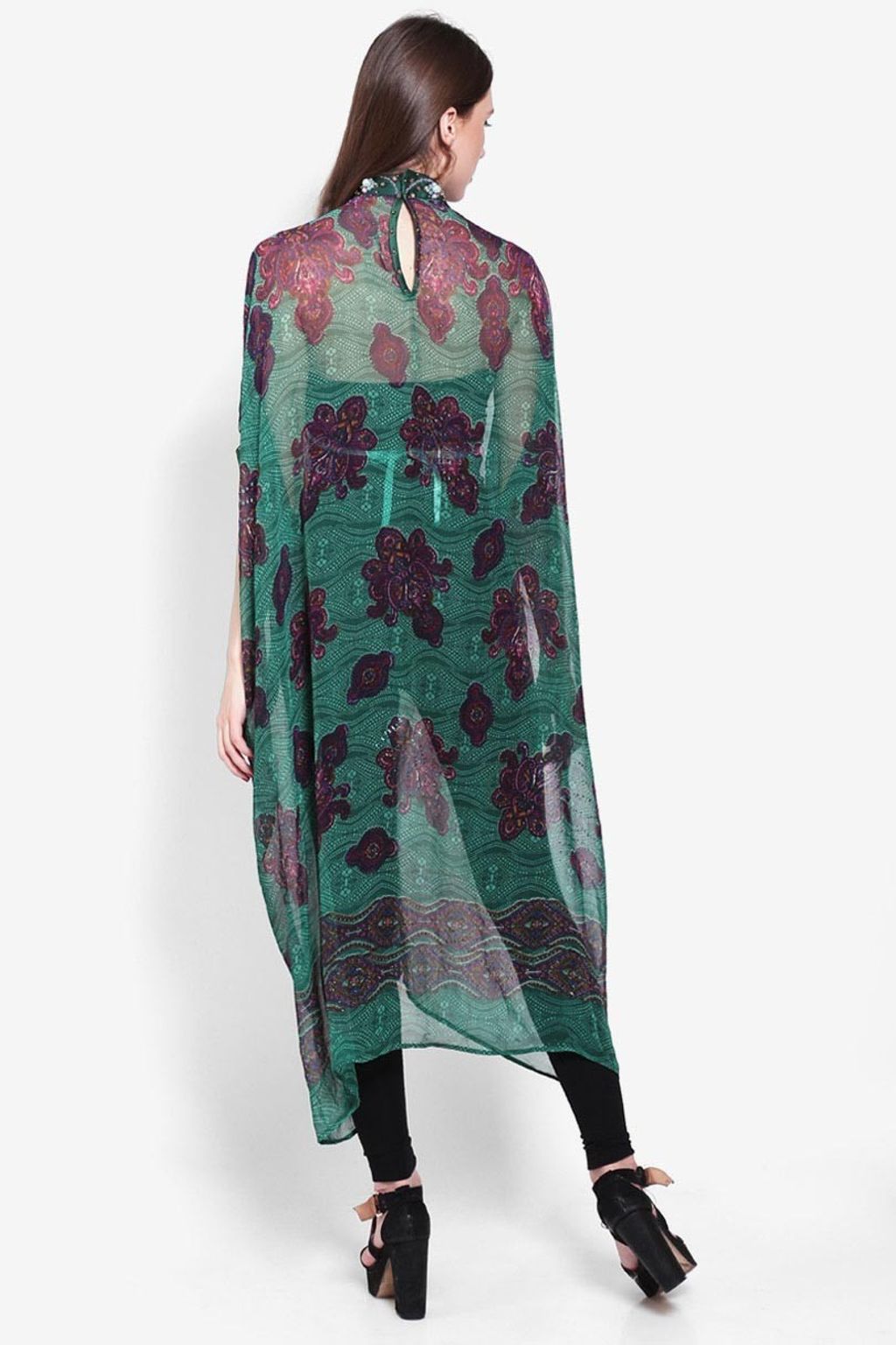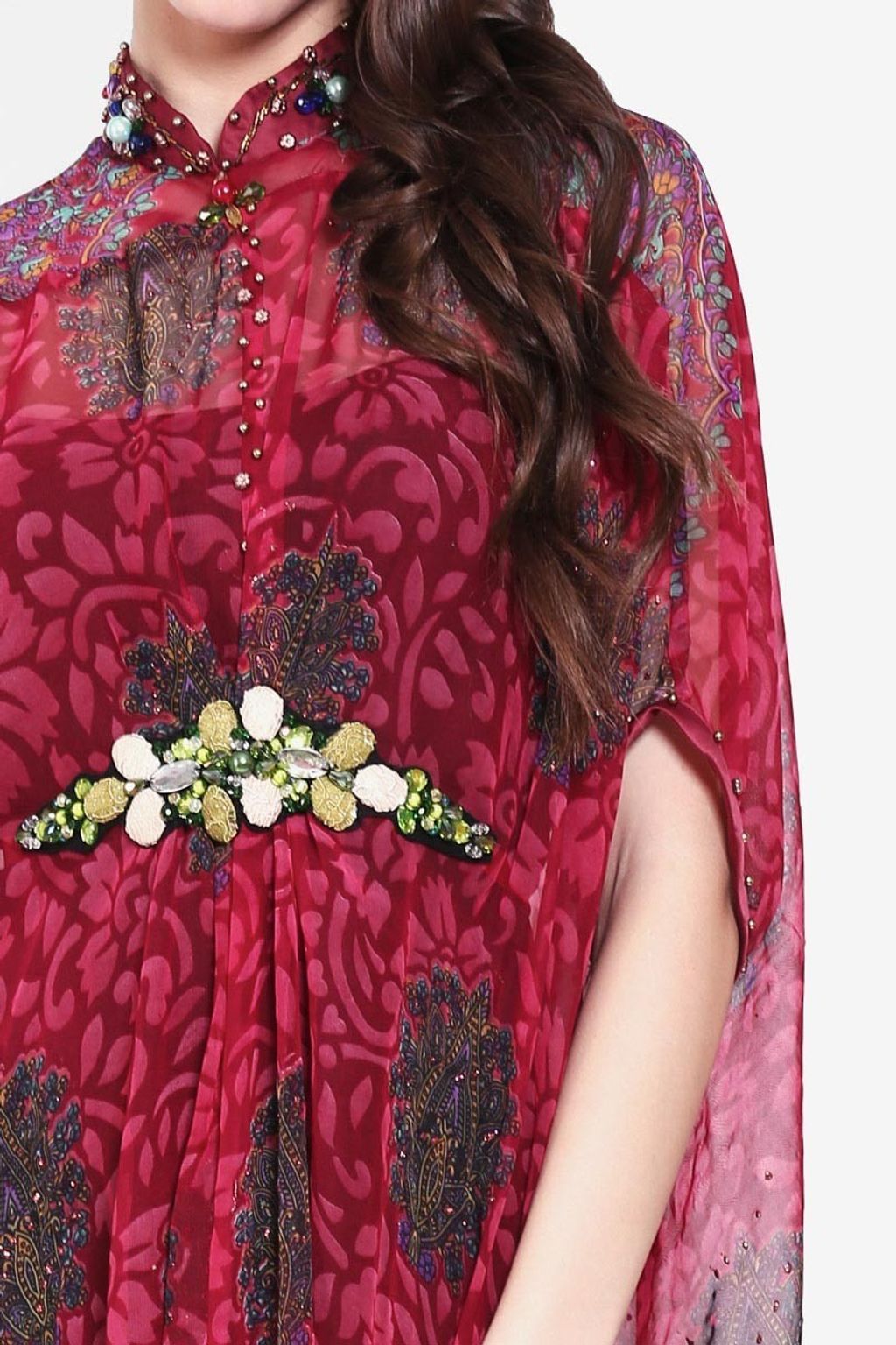 • Kaftan chiffon hijau/marun