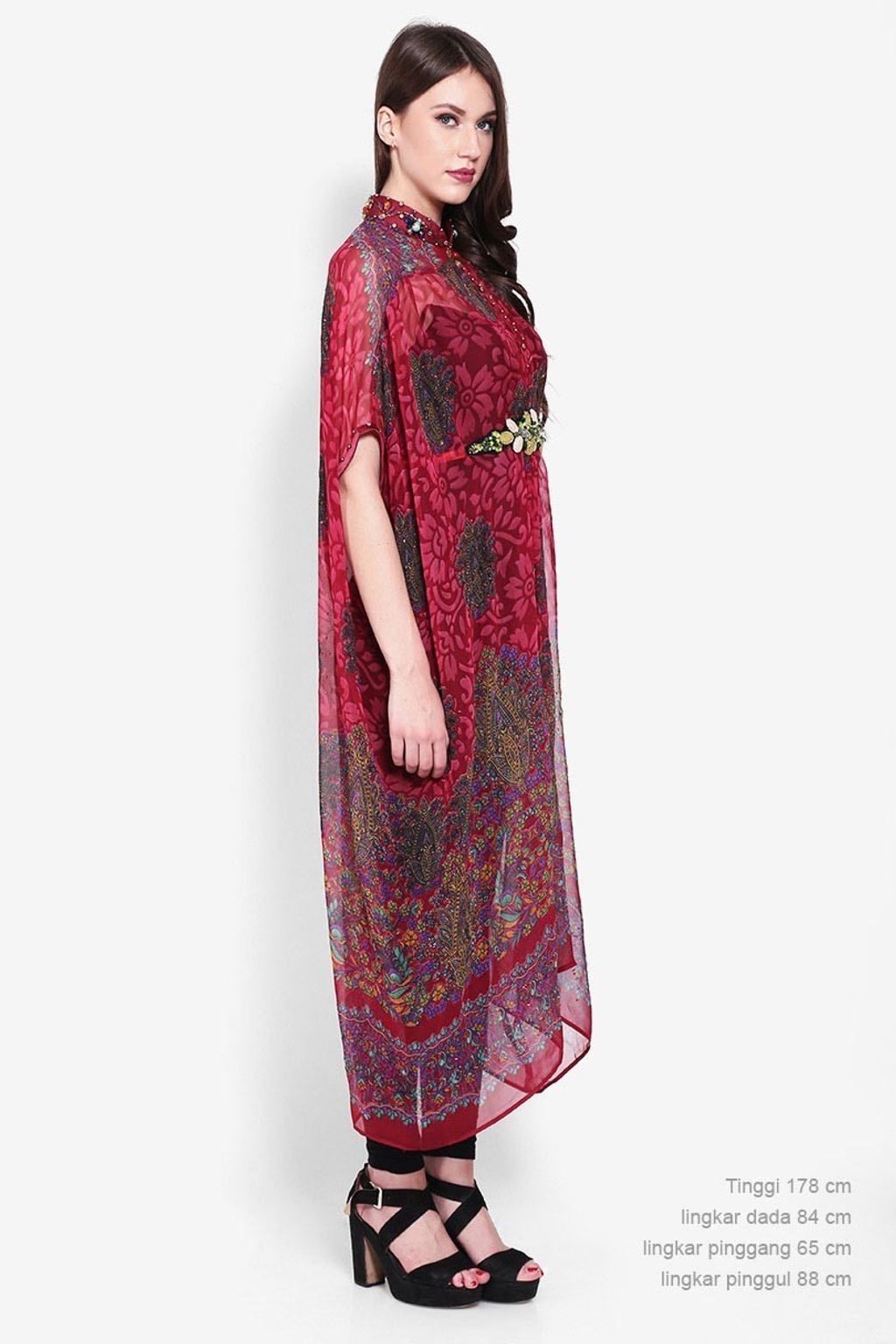 Lingkar dada 84 cm, lingkar pinggul 88 cm, lingkar pinggang 65, tinggi 178 cm