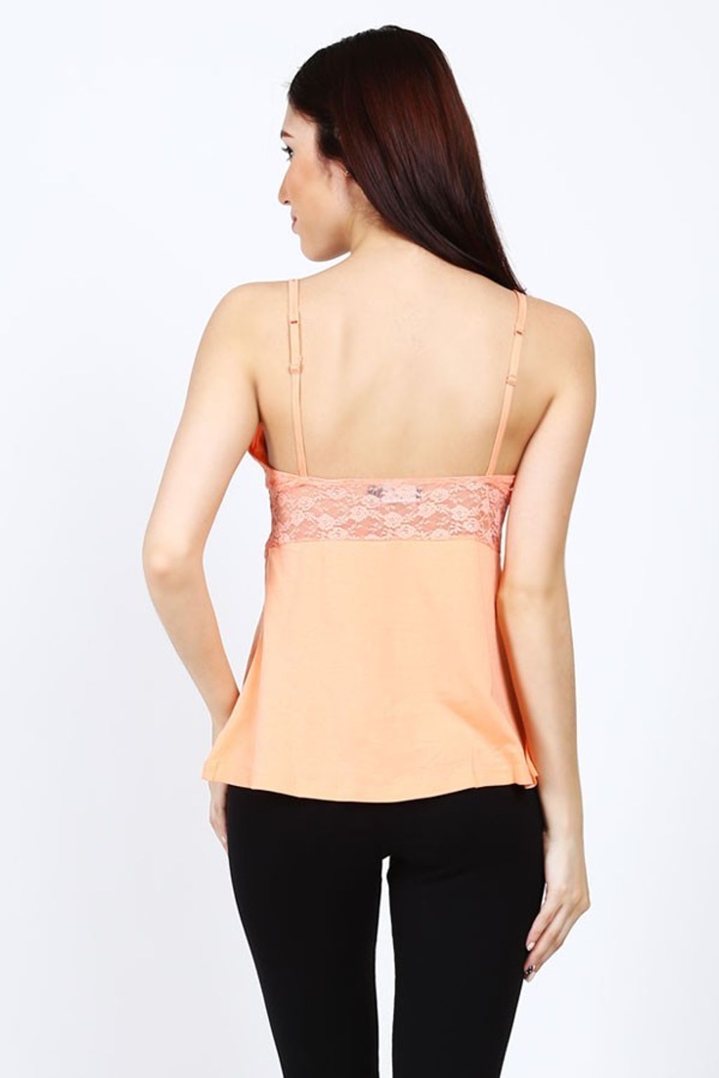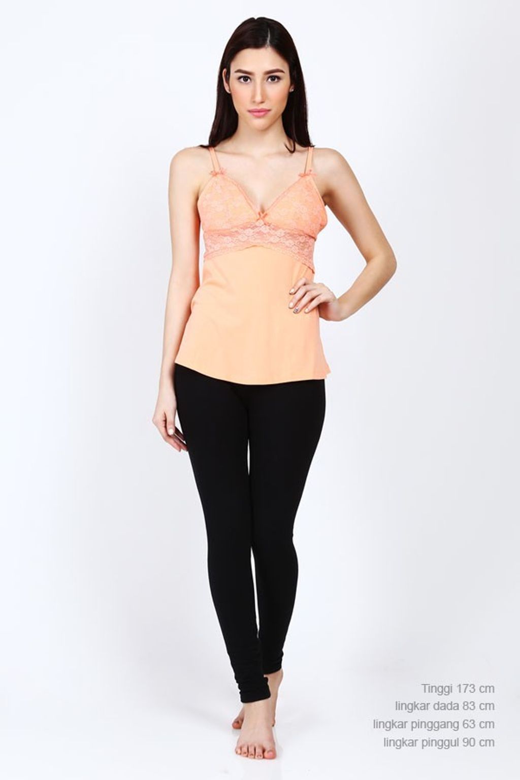 • Sleepwear• Material modal, spandex• Warna orange• Kerah V• Aksen lace• Detail cup bra• Tanpa lengan• Spaghetti strap• Regular fit